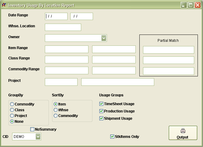 Default Menu Location Reports >> Item Control >> Inventory Usage by Location