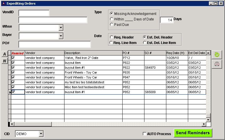 Default Menu Location: Transaction >> Procurement >> Expedite Orders