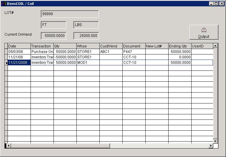 Show On Hand = 0 Displays coils with a current on hand quantity of zero