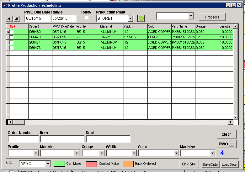 Item lines will appear green for items that can be made, red for items that cannot be made, and orange for items that are backordered {| align="left" background="" border="0" cellpadding="0" cellspacing="0" width="100%"