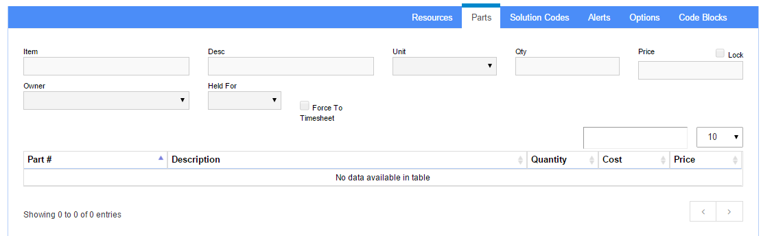 Parts Tab