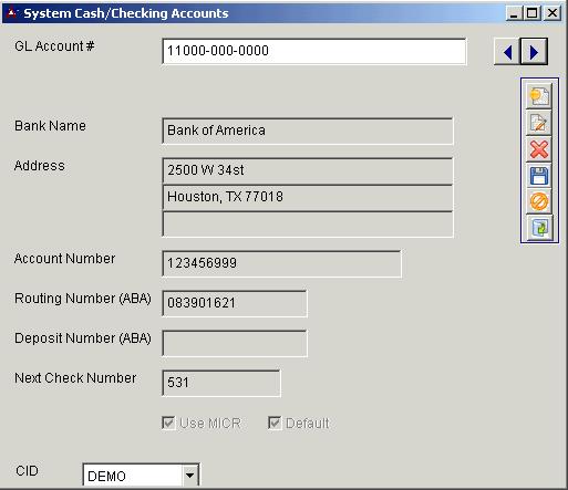 Maintain >> Accounts Payable >> Cash/Checking Accounts