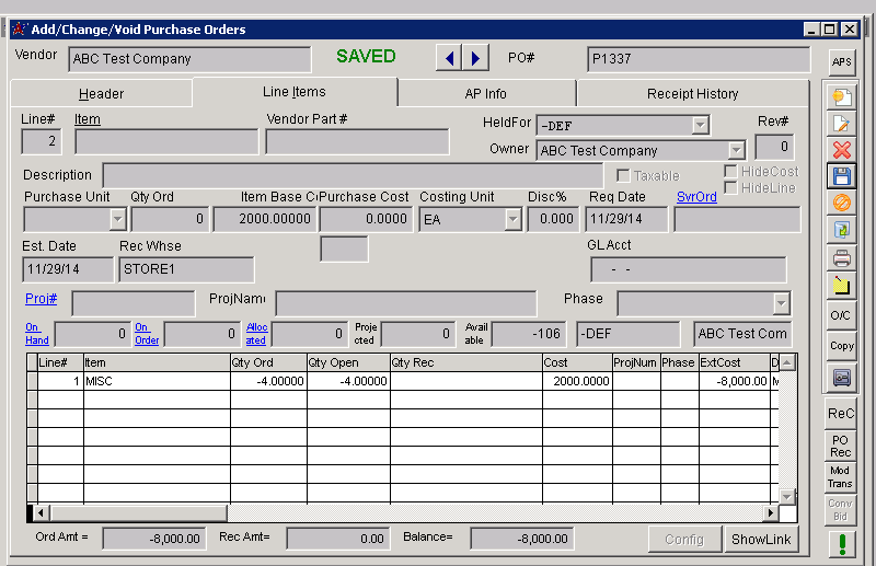 Add/Change/Void Purchase Orders - Click for full size