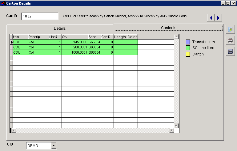 Carton Details Contents Tab |