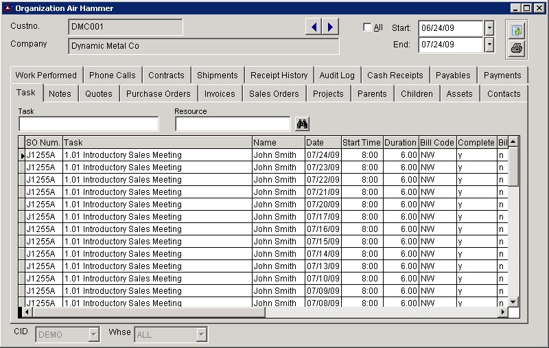 Work Performed: Tasks that have been completed for the organization. Search by Task name and Resource.