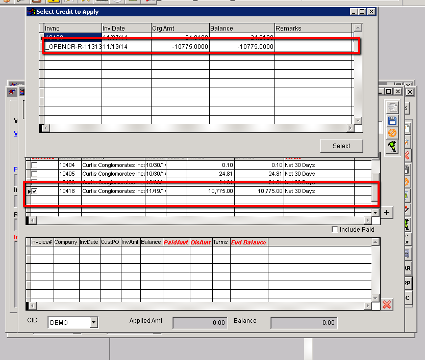 On the credit Memo Invoice, there will be a negative balance. Select the AR2AP button to generate the AP invoice. This will create the ability to cut a check to the customer (Make sure they have the RemitTo attribute)