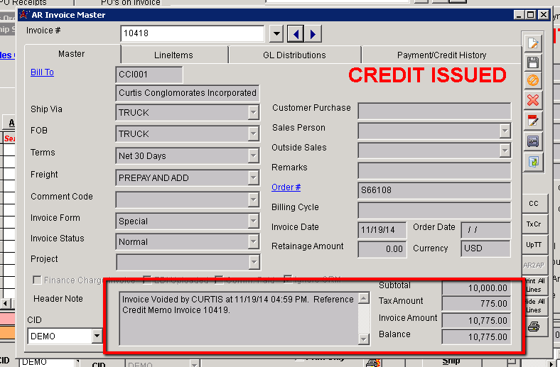 There will now be a header note with a new credit memo invoice. The balance will be addressed in a few steps.