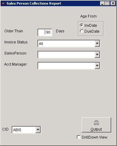 Reports >> Accounts Receivable >> Sales Person Collections Report