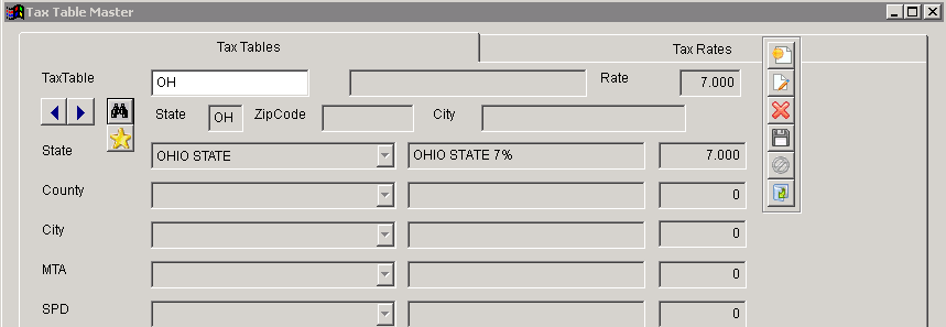 Currently the OH tax table (what was used before the subscription) is set up at 7% all under one State rate. To edit this we can either increase the state rate or build a rate for the county, city, zip, etc.