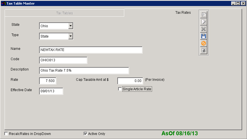 Tax Rates Tab (Modifying/Adding Tax Rates)