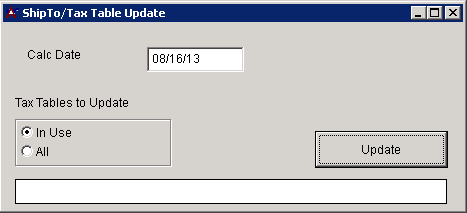 Now that we have an updated rate we can to the tax table update screen Maintain>> Sales Tax>> ShipTO/TaxTable Update. Select update and you're done!