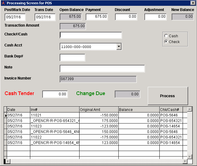 Cash Acct: This is to ensure the payment hits the correct cash account. This account can automatically change based on the selected payment method. For more information, please refer to the 'Rule Maintenance: Point of Sale Account' page