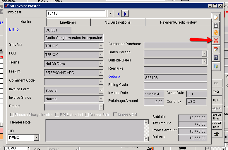 On the credit Memo Invoice, there will be a negative balance. Select the AR2AP button to generate the AP invoice. This will create the ability to cut a check to the customer (Make sure they have the RemitTo attribute).