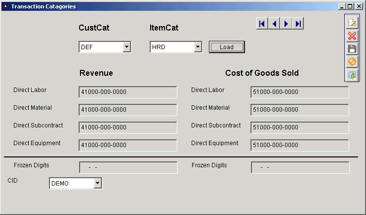 To set up a new transaction category, select the customer and item categories from the drop-down menus and click Load.