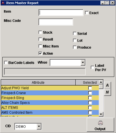 Item Master Report allows users to see the item(s) with general information such as description, type, average cost, and etc.