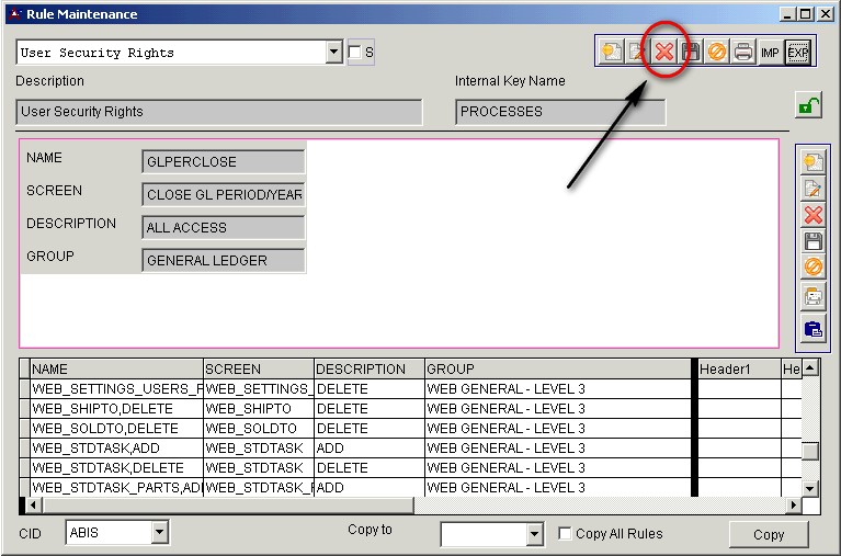 PLEASE NOTE: THIS IS ONLY FOR THE OLD VERSION OF SECURITY RIGHTS. NEW SECURITY RIGHTS ARE MANAGED VIA THE SECURITY TOKENS SCREEN.