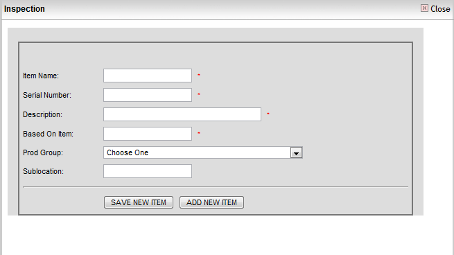Function Add new item to the Inspection Report. Enter additional service order and sublocation for item