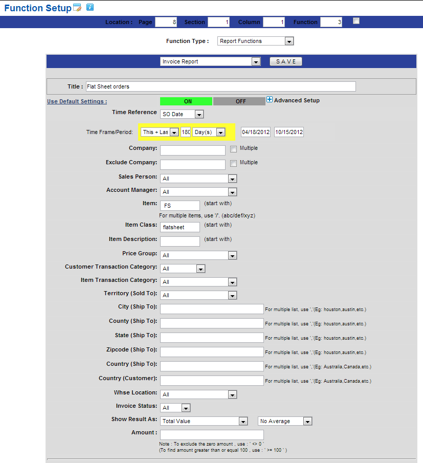 Function: Setting the appropriate report functions allows users to alter the data that is pulled into the reports and KPI's
