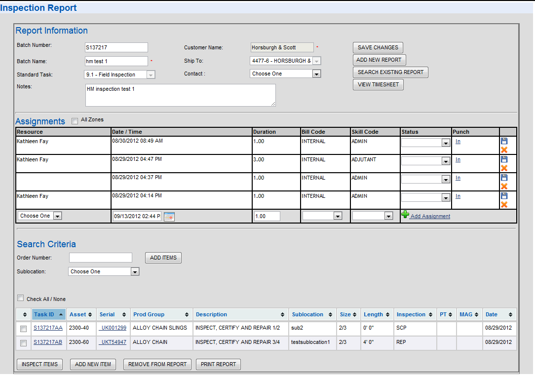 Batch Name: Description field for the inspection. Free text, can be different for each inspection