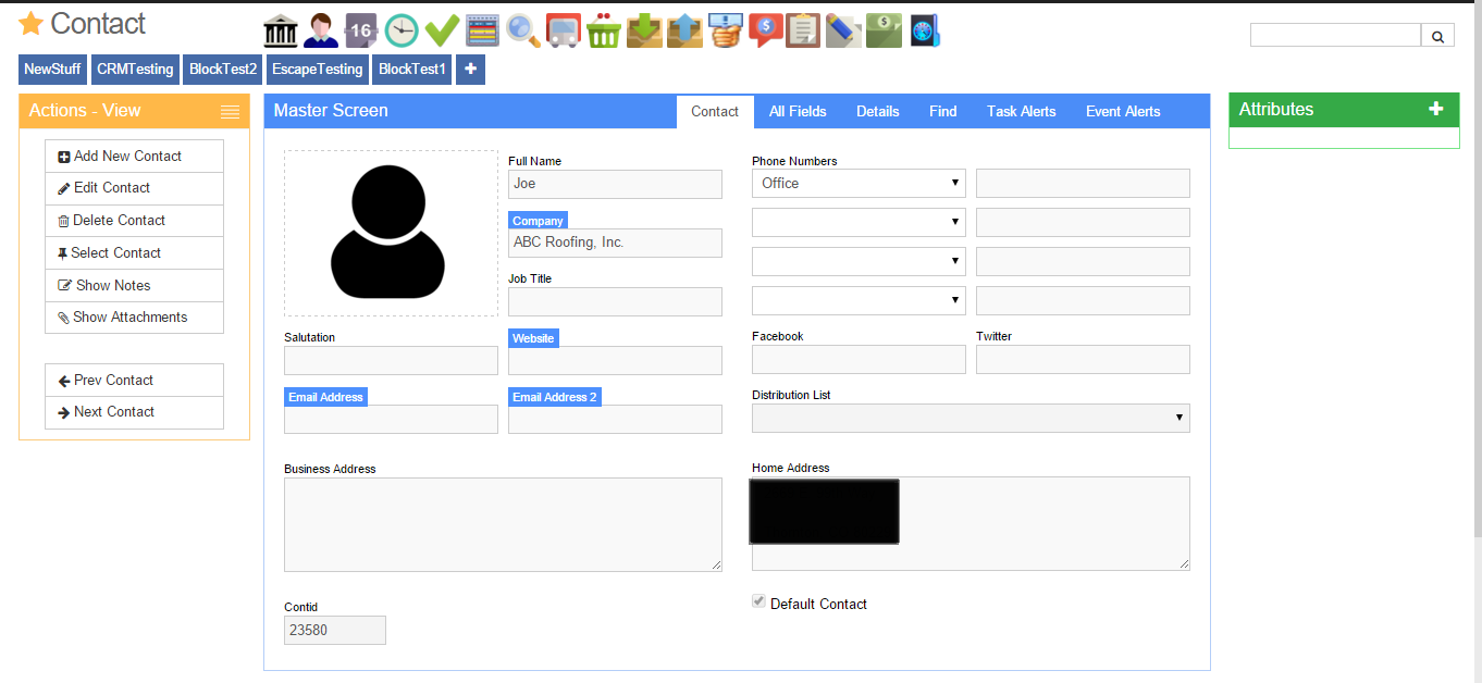 Attributes: Attributes that have been assigned to the contact are visible in lower right-hand box.