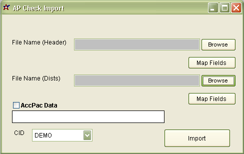 Default Menu Location Transaction >> Importers/Exporters >> Accounting >> AP Check Import