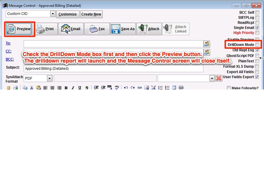 Function The Message Control screen allows users to send emails, faxes, attach documents, preview reports, print, etc.