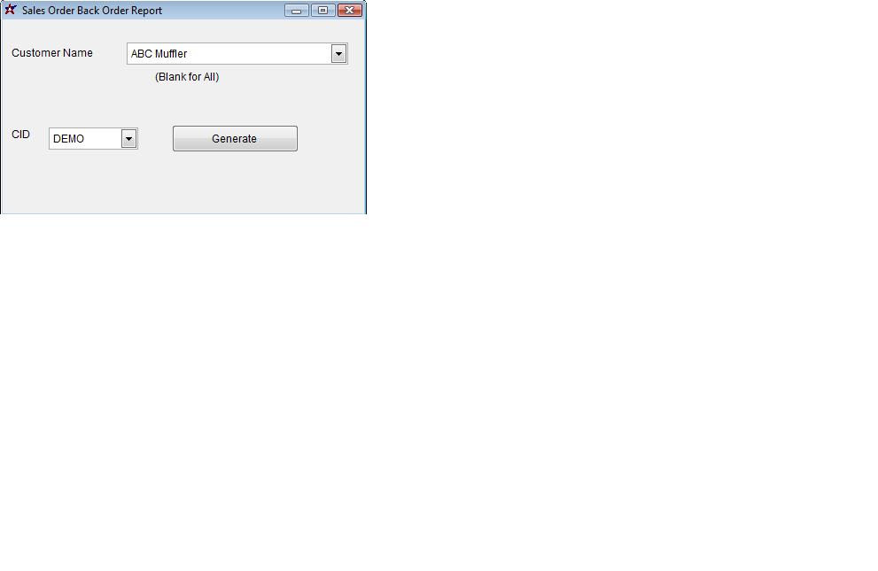 The Sales Order Back Order Report generates a list of back ordered items based on the company selected.