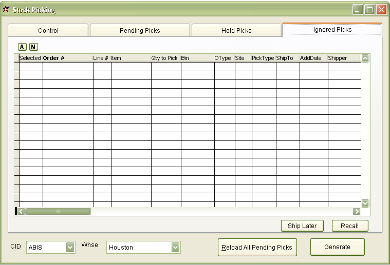 Pending Picks window generates picklists and sends them to the wireless hand-held scanners in the warehouse. The