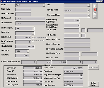 Organization screenThe Bill To screen is used to maintain billing information such as, Payment Terms, Credit Limits, Customer Transaction Category, etc.