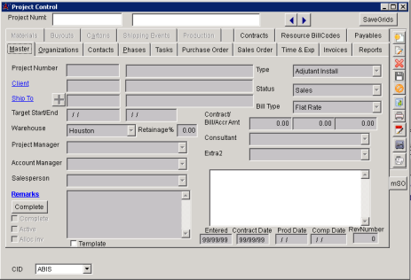 Function Project Control Screen is used to add/edit/delete all internal and external projects for your organization.