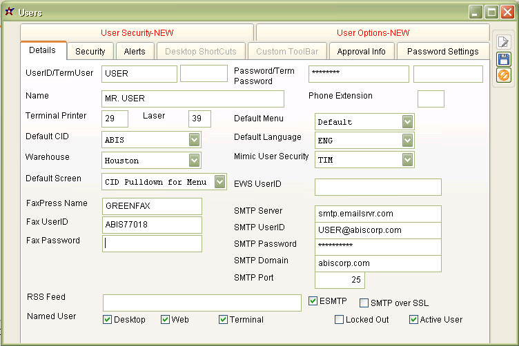 SaveUniform Password Settings for all NEW users may be set up in the CID Maintenance Screen under the