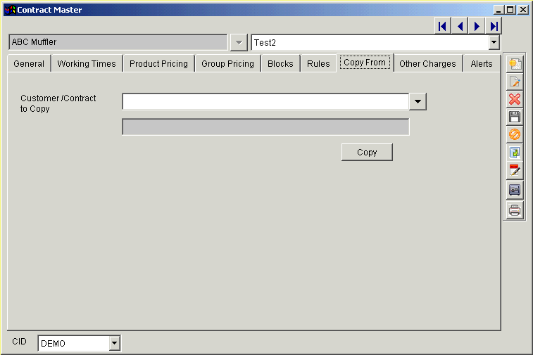 Copy From tab is used to directly copy all rules from a previously defined contract to a new contract. It provides an easy way to set up new contracts if most of them are similar in nature.
