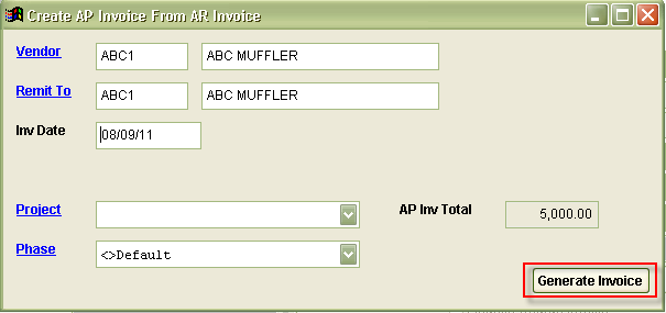 The resulting AP invoice can be tagged with a Project/Phase if needed.