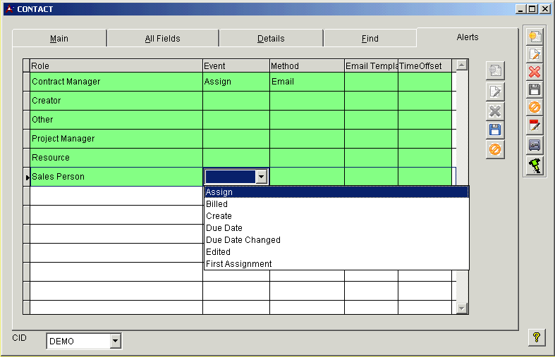 Contact - AlertsAlerts tab is used to notify different alerts to users.