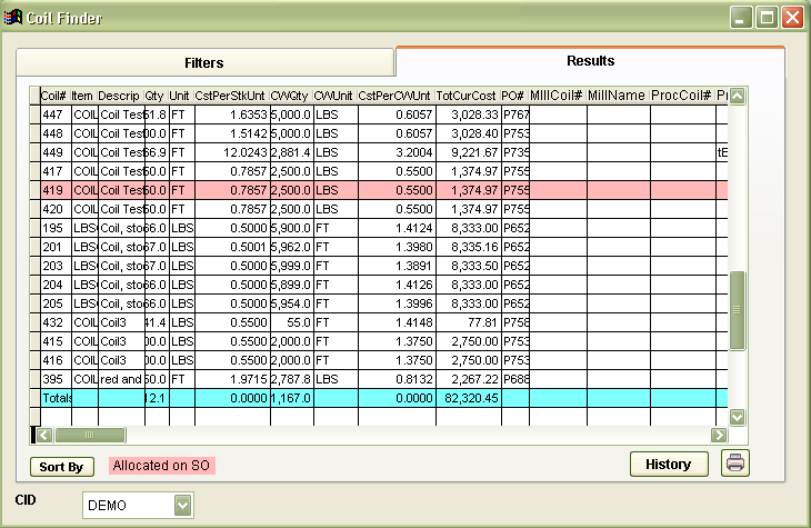 FunctionThe Coil Finder allows you to search current and past coil inventory using all data fields related to a coil.