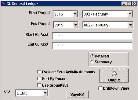 Detailed - If this is selected, the report will give details regarding document number for each transaction for each account in the range