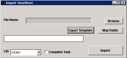 Function: The Timesheet Importer screen allows importing time entries to existing tasks. The import screen also has the ability to complete the tasks that the time entries get imported to.