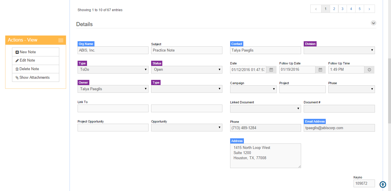 Notes is an easy way to keep track of communication among contacts and a reminder for actions to do.