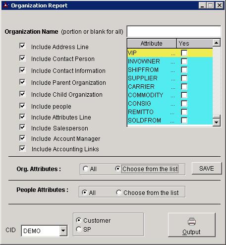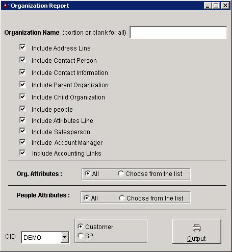 Organization Reports screen generates information about a company and its affiliated organization. An affiliated company could be a customer or a vendor depending on the attributes.