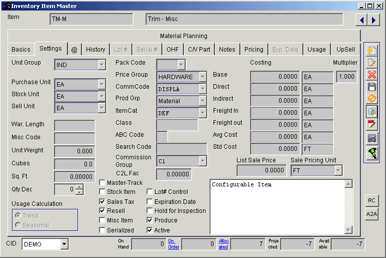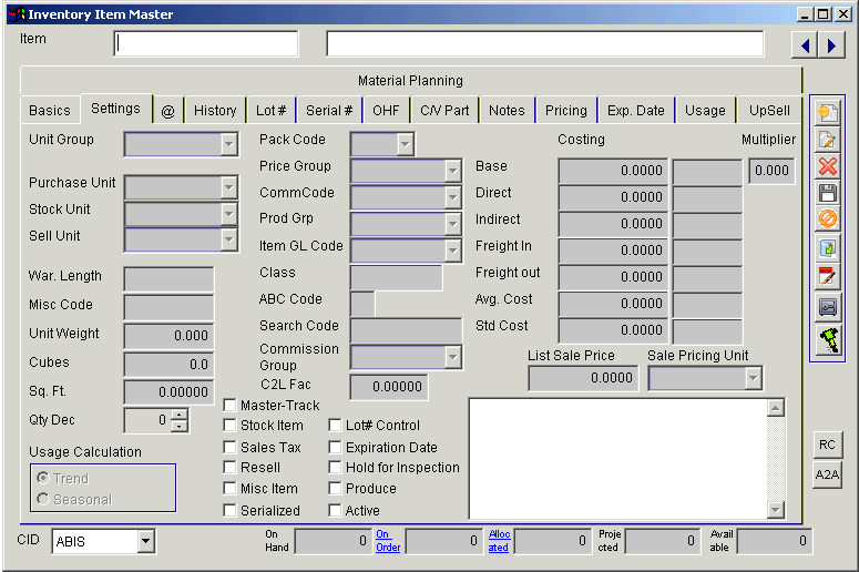 Inventory Item Master ScreenOnce the Inventory Item Master is completely filled in the