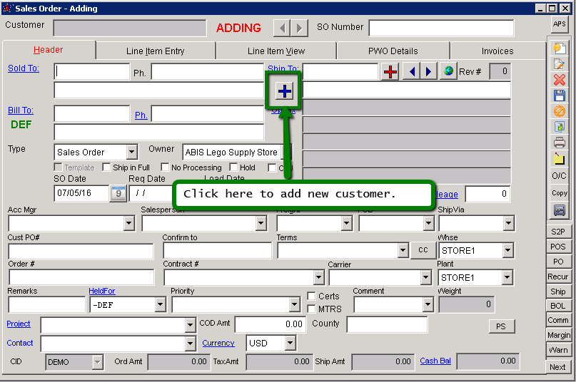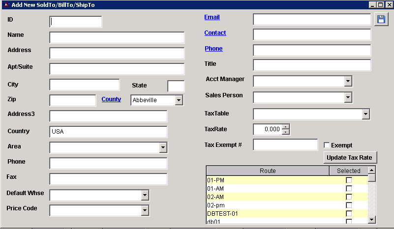 The quick add new customer screen allows you to quickly add a new customer when doing order entry.