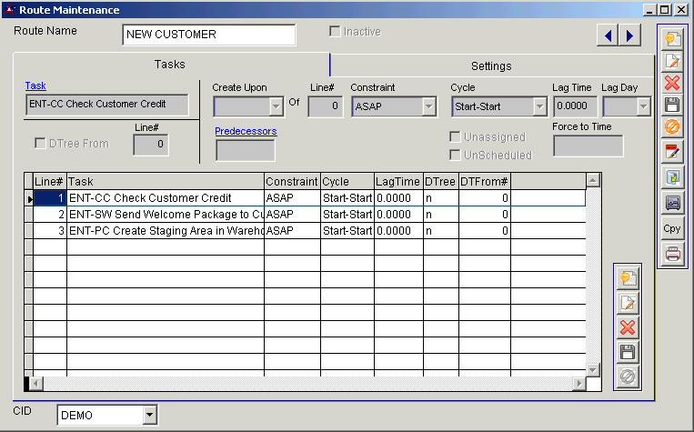 Function The Route Maintenance screen is used to add and maintain routes of standard tasks.