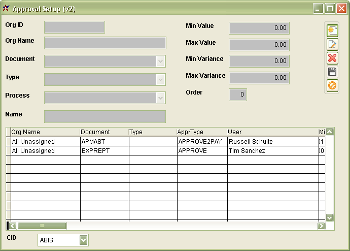 Function The Approval Setup Screen allows you to maintain and create your company's document approval processes.