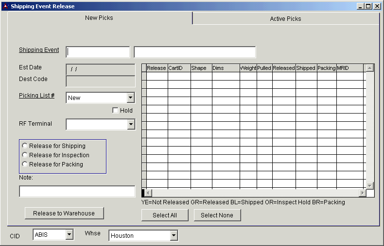 Shipping Event Release window is the primary screen used for final picking of cartons for shipment. After a
