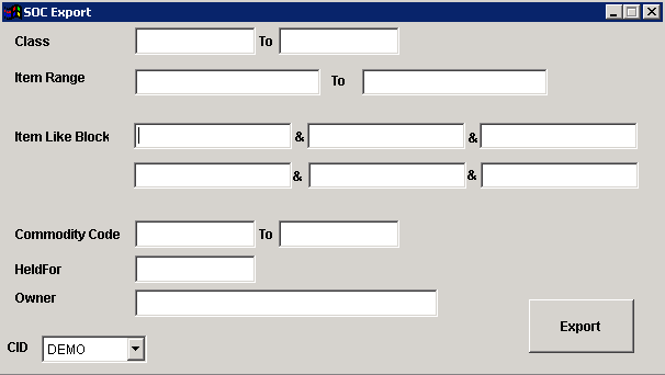 Function This screen will export the SOC questions and answers for the specified items
