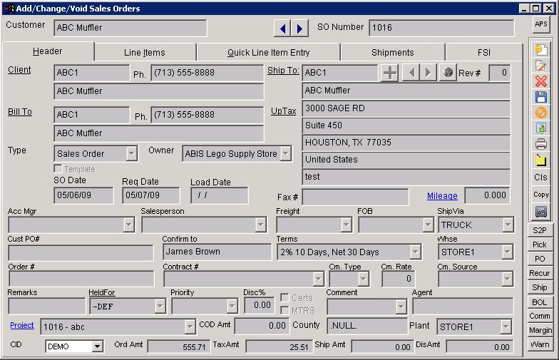 Function The Sales Orders Screen is used to add, edit, and void sales orders. The Header tab is used to enter the basic information that starts a sales order.