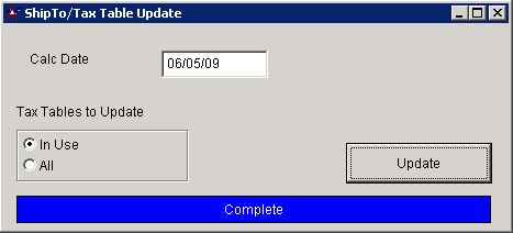 Maintain >> Sales Tax >> Ship To/ Tax Table Update