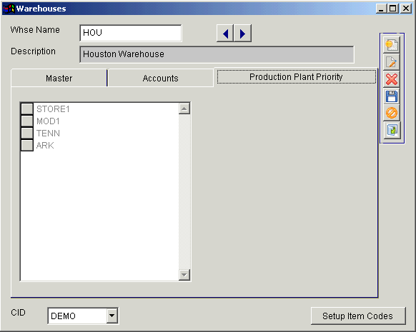 The Production Plant Priority screen allows you to proiritize where items are made according to warehouse capabilities