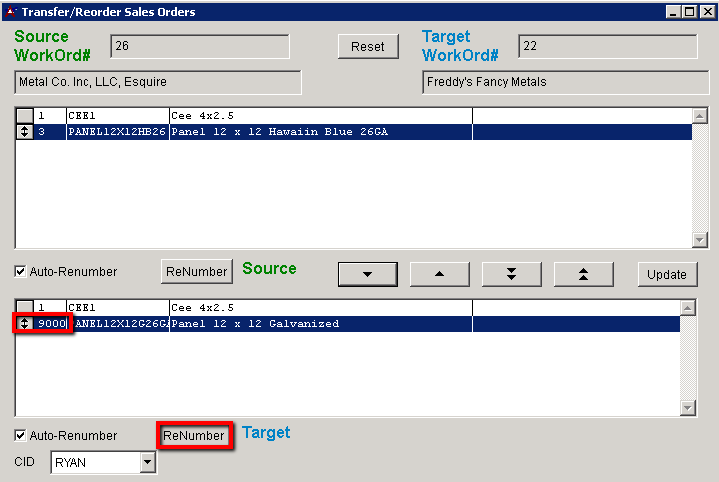 ReNumber - Re-numbers the line items that have been transfered.