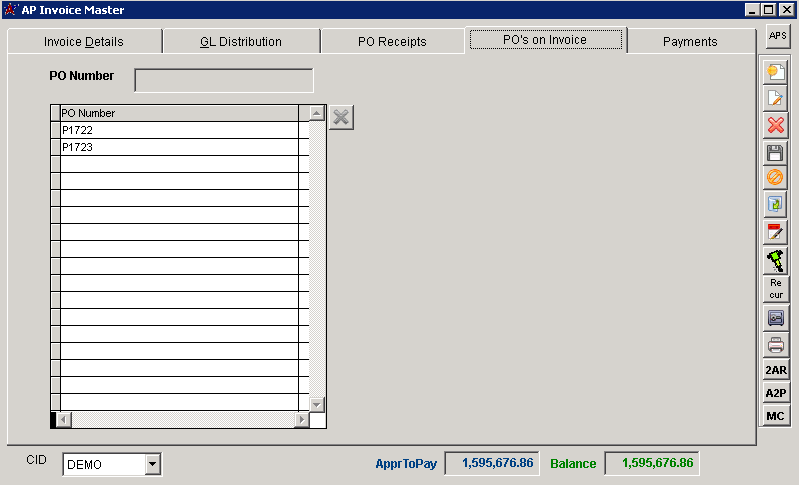 AP Invoice Master PO's on Invoice |